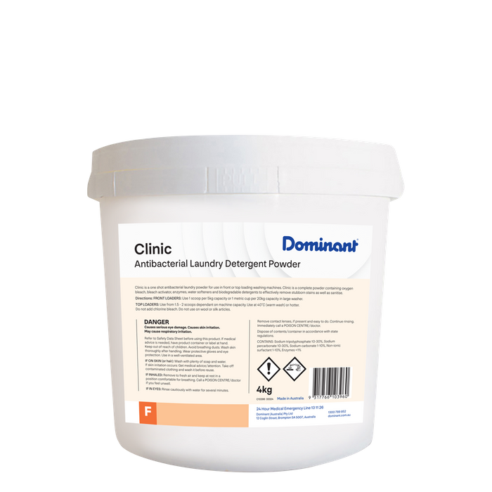 Clinic Antibacterial Laundry Powder is suitable for use in both commercial and domestic front and top loading washing machines.