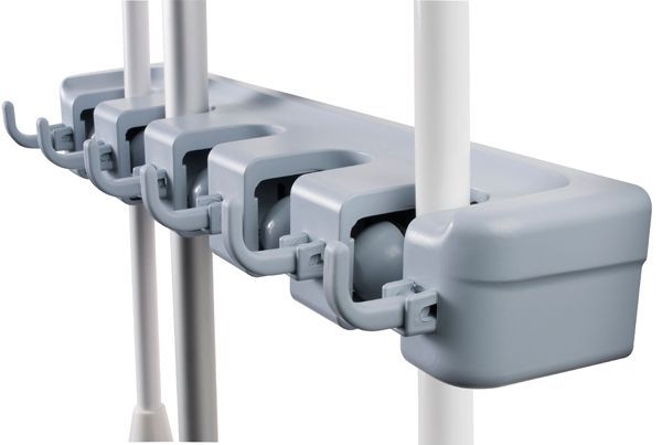 - Neatly stores brooms, dusters, mops, gardening and sporting equipment on one handy unit