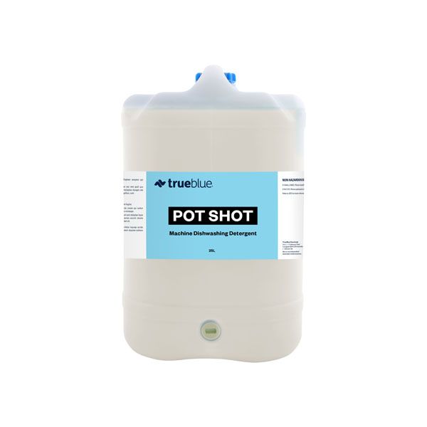 Pot Shot is a non-caustic, high alkaline detergent with inbuilt water softening to reduce scale build up.