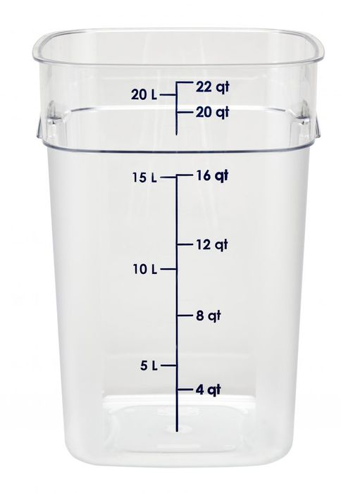 - Easy to read volume markings in clear containers for quick inventory across a busy kitchen.